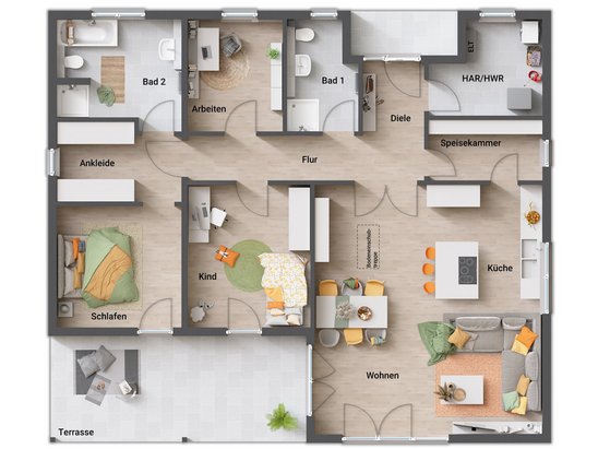 Wir bauen deine eigenen vier Wände genau nach deinem Geschmack: Der Haustyp gibt einen Rahmen, aber die Gestaltung ist ganz dir überlassen. Entscheide dich für den Grundriss, der am besten zu deiner Wohnsituation und deinem Lebensstil passt und erlebe so hohen Wohnkomfort wie noch nie zuvor.
